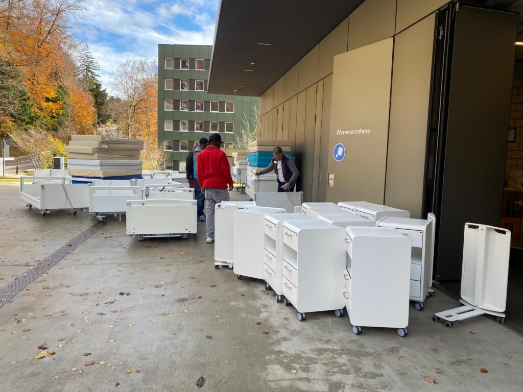 Unter der Leitung unseres Physiotherapeuten Albert Sampson wurden 15 ausrangierte Betten, 50 Matratzen, 11 Nachttische und 3 Tische in einen Schiffscontainer verladen – das Ziel: Ghana. Zum Instagram-Beitrag.