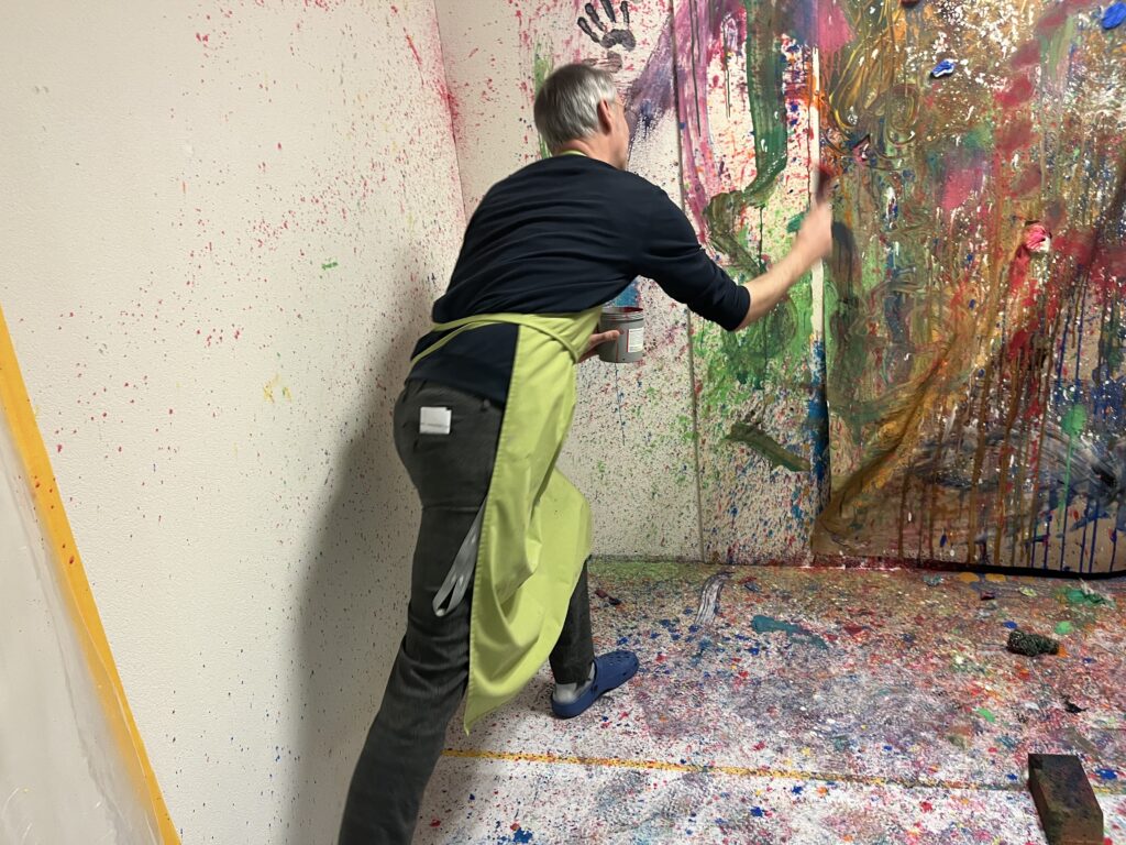 . Der Raum ermöglicht kindliches, ungehemmtes Spielen und Matschen mit Farbe, das sinnliche Erleben des Moments, das intuitive und sichere Ausagieren von Gefühlen mittels Farbe sowie die Befreiung und Verarbeitung von verdrängten oder unterdrückten Gefühlen. Emotionale Entlastung und Selbstreflektion, das Erforschen und Erleben von Emotionen