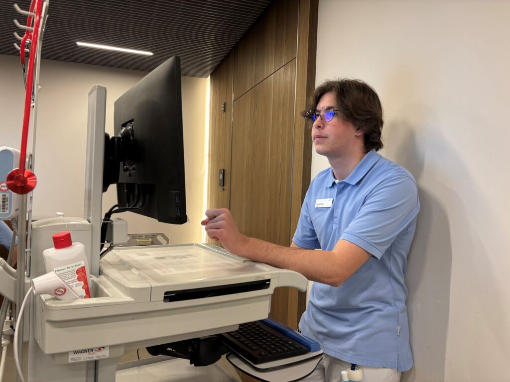 Amoha: Allgemein sind meine Aufgaben schon sehr anspruchsvoll, wir lernen vieles sehr früh, aber wir werden auch immer gut begleitet von unseren Berufsbildnerinnen und Berufsbildnern. Ich hatte bis jetzt nie das Gefühl, dass ich nicht weiss, was ich tun muss oder wie ich etwas tun muss und die Vielfalt an pflegerischen Tätigkeiten finde ich super. Am schönsten ist es für mich, wenn ich sehe, welche Fortschritte meine Patientinnen und Patienten machen, zum Beispiel, wenn sie am Anfang noch im Rollstuhl waren und dann plötzlich wieder gehen können. Schön ist auch die Dankbarkeit der Patientinnen und Patienten gegenüber uns Pflegenden. Beim Putzen und Aufräumen schliesse ich mich Lyan und Dario an, zudem müssen wir oft auch Dinge auffüllen, was viel Zeit beansprucht und dann kann es manchmal etwas stressig werden, um alles zu schaffen.